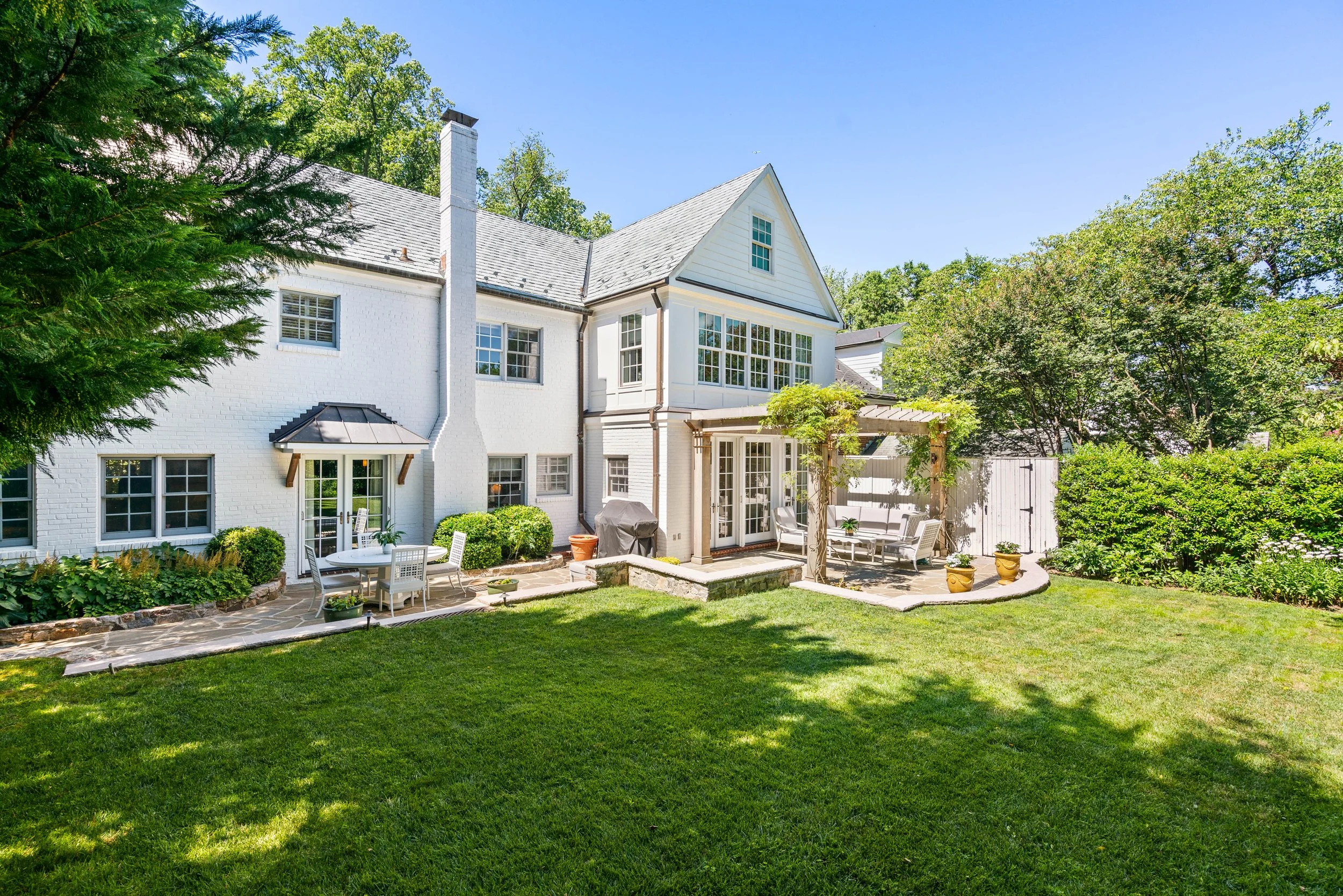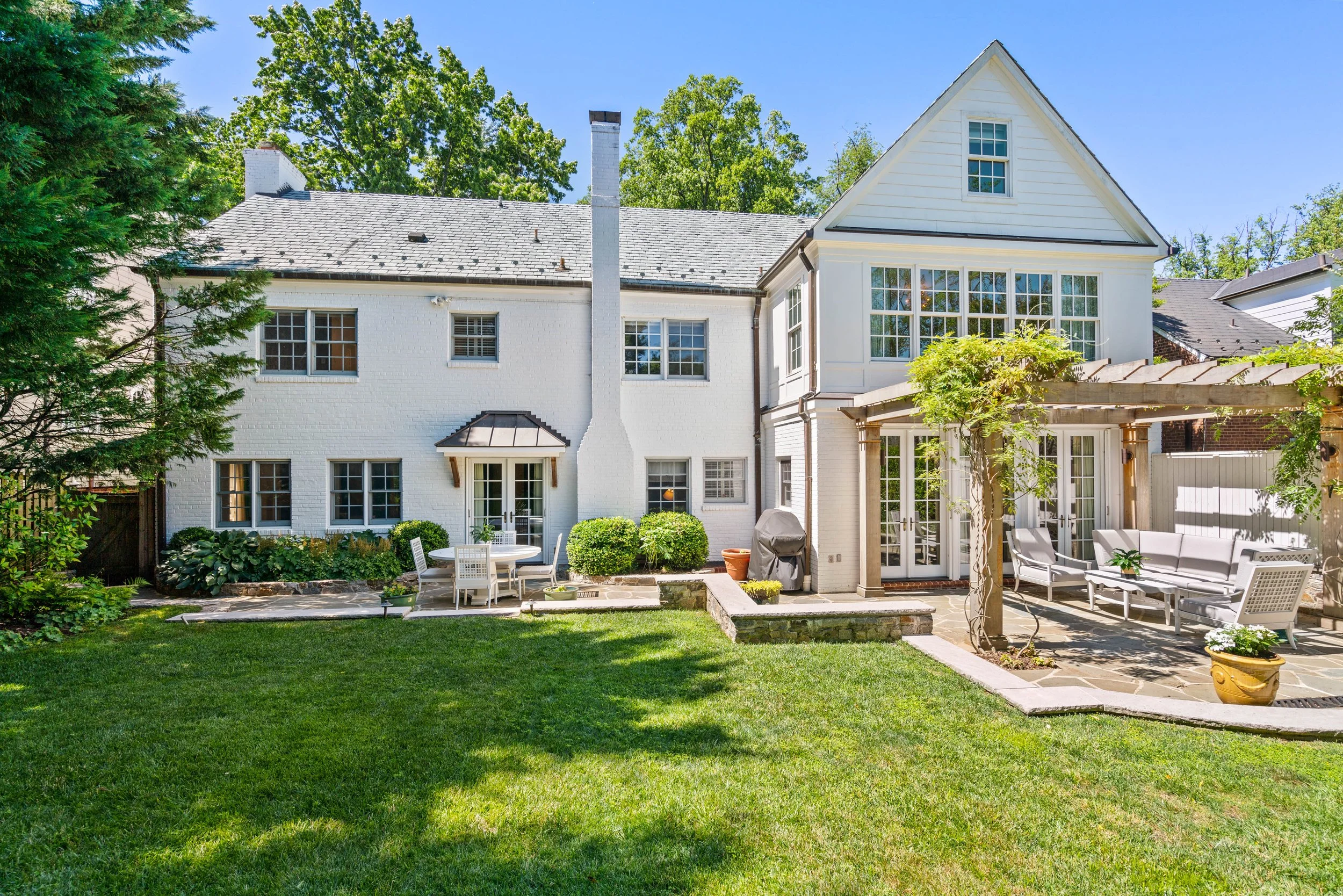 The fully fenced backyard is a private oasis perfect for entertaining. There are multiple terraces, one shaded by a wisteria-covered pergola, and a pool-sized lawn surrounded by mature landscaping. There is also private neighborhood access to American University's recreational facilities including the track, field, and tennis courts. Restaurants, shops, parks, and bike trails are all conveniently located nearby, making this an ideally positioned, luxurious, and impeccably renovated home.